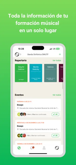 Organiza, colabora y haz crecer tu grupo de músicos sin complicaciones. Glissandoo te ofrece las herramientas necesarias para gestionar ensayos, conciertos y repertorio de forma eficiente y sin esfuerzo, todo desde una única plataforma digital.
